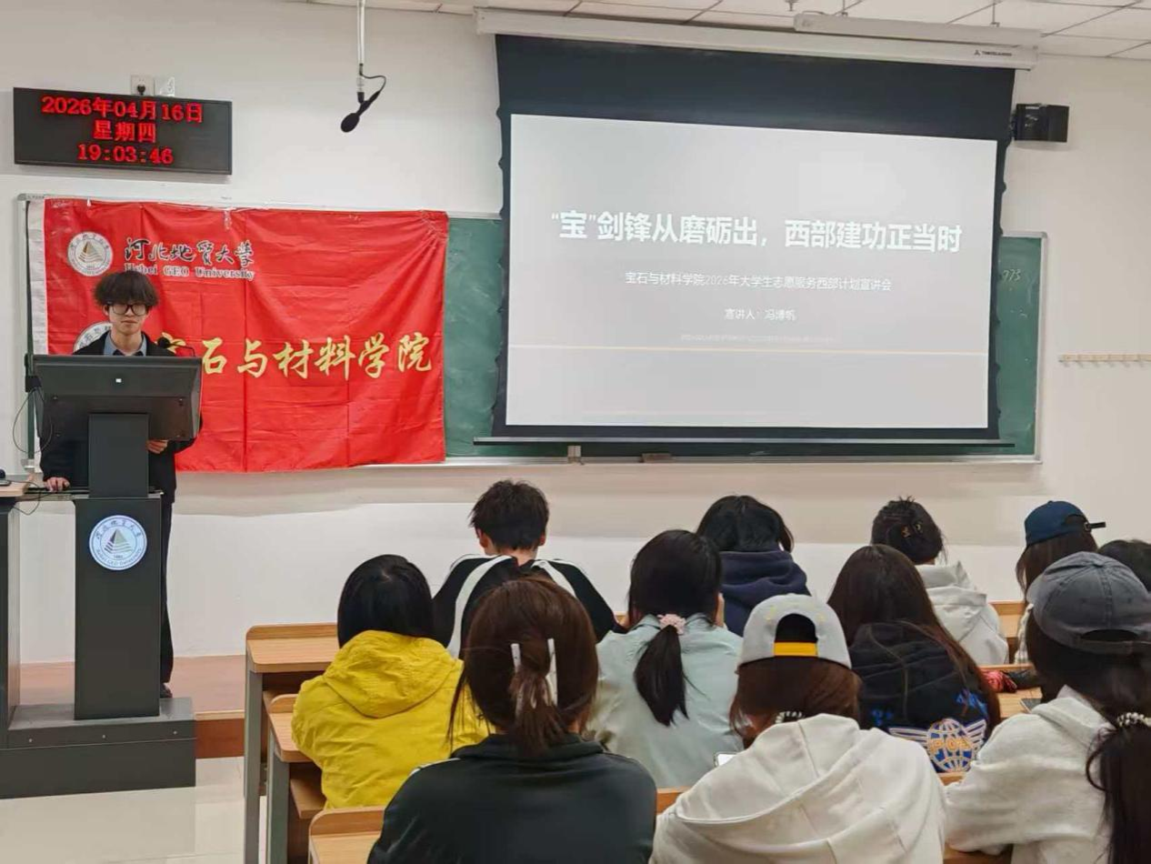为引导青年学子将个人理想融入国家发展大局,激励毕业生赴西部、基层及祖国最需要的地方建功立业,宝石与材料学院于4月16日在...