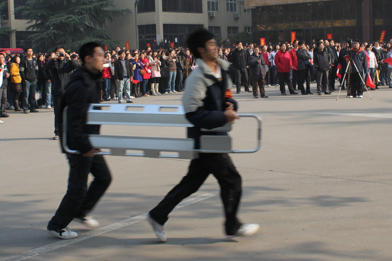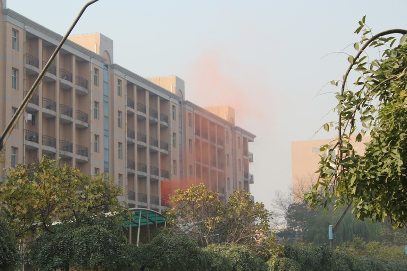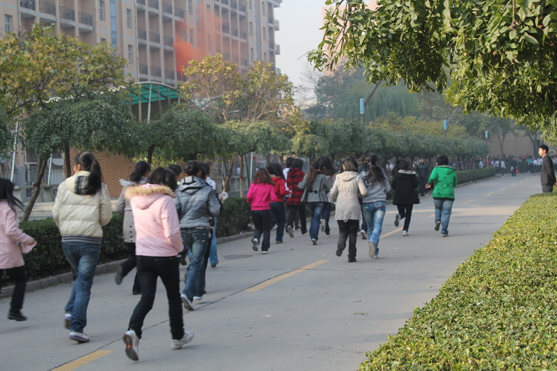 我校举行火灾逃生演练